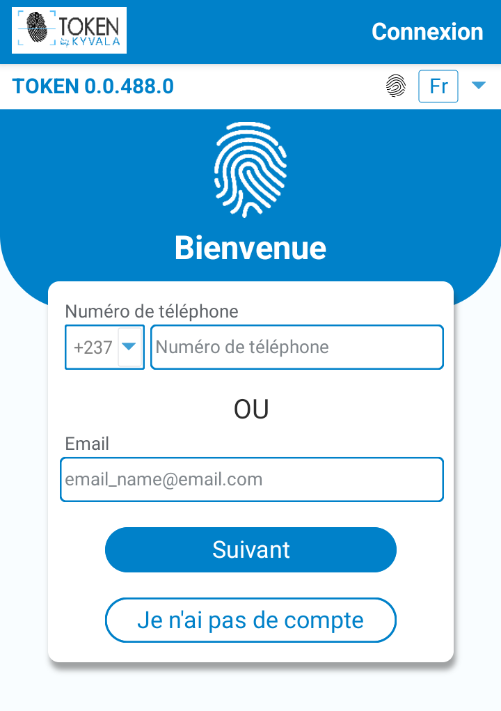 I click on the TOKEN icon to open the application. I click on "I don't have an account".I complete the registration form