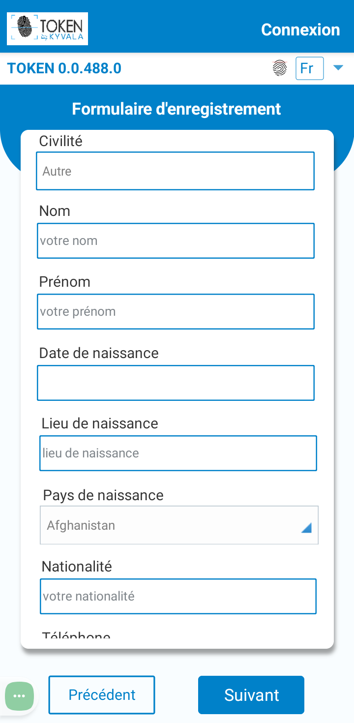 - Biometric information : By following all the instructions, I capture my face to take an identity selfie. I capture the fingerprints of the 5 fingers on my left hand and then those of my right hand, then I click on "next"